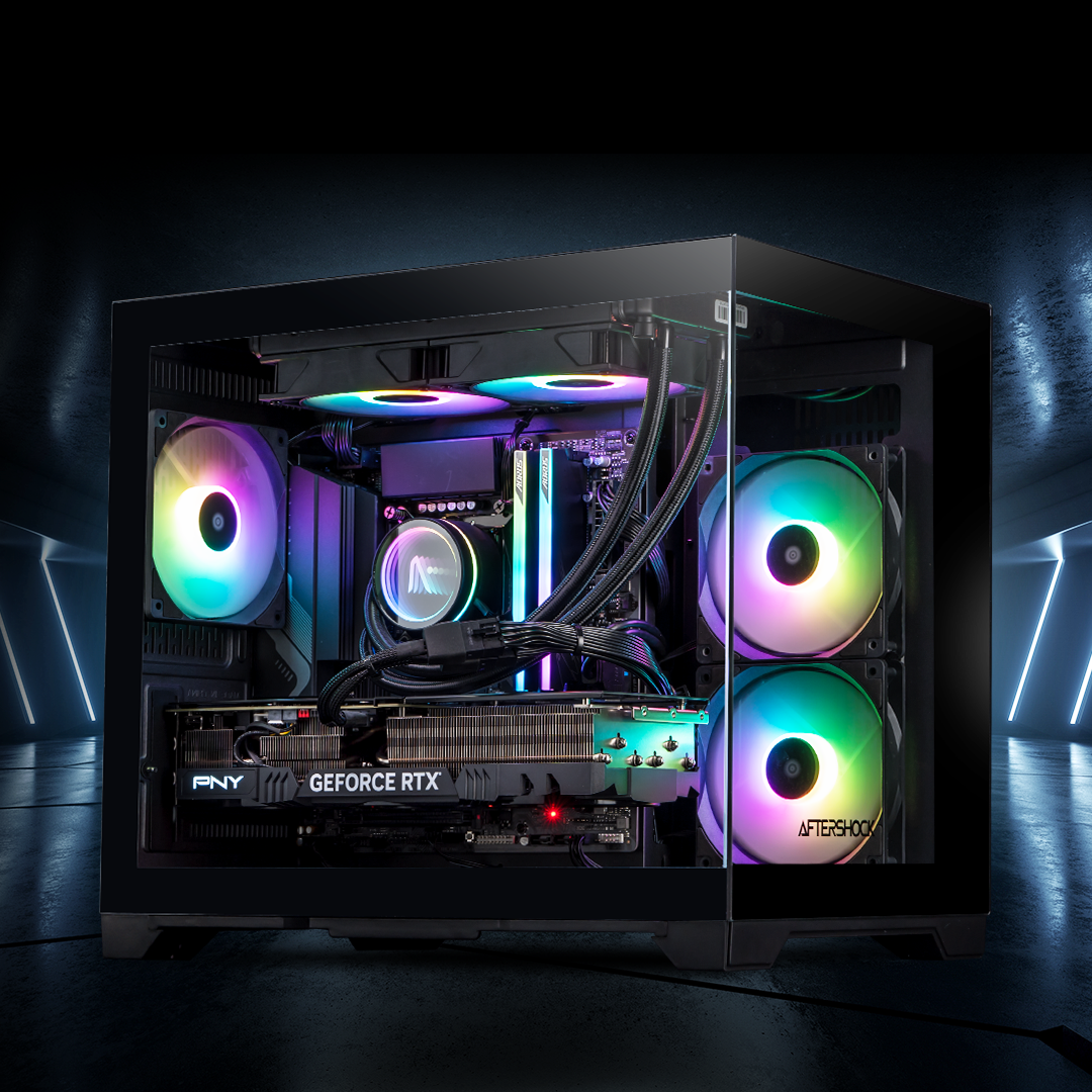 The AFTERSHOCK ZEAL is the perfect blend of aesthetics and function. Featuring a full glass side panel, the ZEAL’s stunning case puts your components in the spotlight while being packed with the power you need to run your favourite titles at buttery smooth frame rates. Combine that with AFTERSHOCK PC’s precision craftsmanship and attention to detail, and the ZEAL is the ultimate showcase Custom PC.